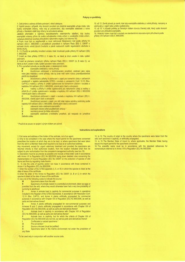 Do „seznamu příloh“ uvedete: druh želvičky (český nebo latinský), registrační číslo HKK/……/….., CZ/HKK/……../…… a v případě, že je želva čipovaná, tak uvedete číslo čipu. Tyto informace naleznete opět na přední straně žlutého listu.